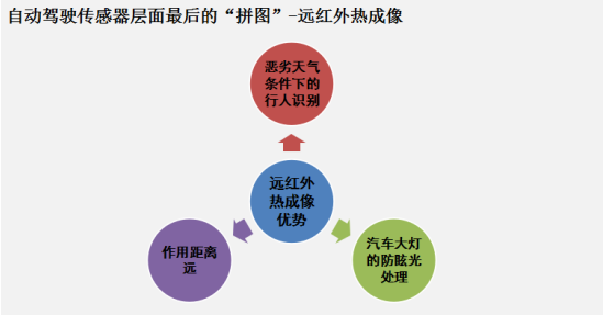 所以面對這種既要能在夜晚和惡劣的天氣情況下,解決視覺和行人識別的問題。看似無人駕駛未能找到解決方案,但其實(shí)我們忽略了,夜視傳感器中的遠(yuǎn)紅外傳感器。因?yàn)檫h(yuǎn)紅外技術(shù)只考慮觀測主體與環(huán)境之間溫度差,可以不受光線情況影響。